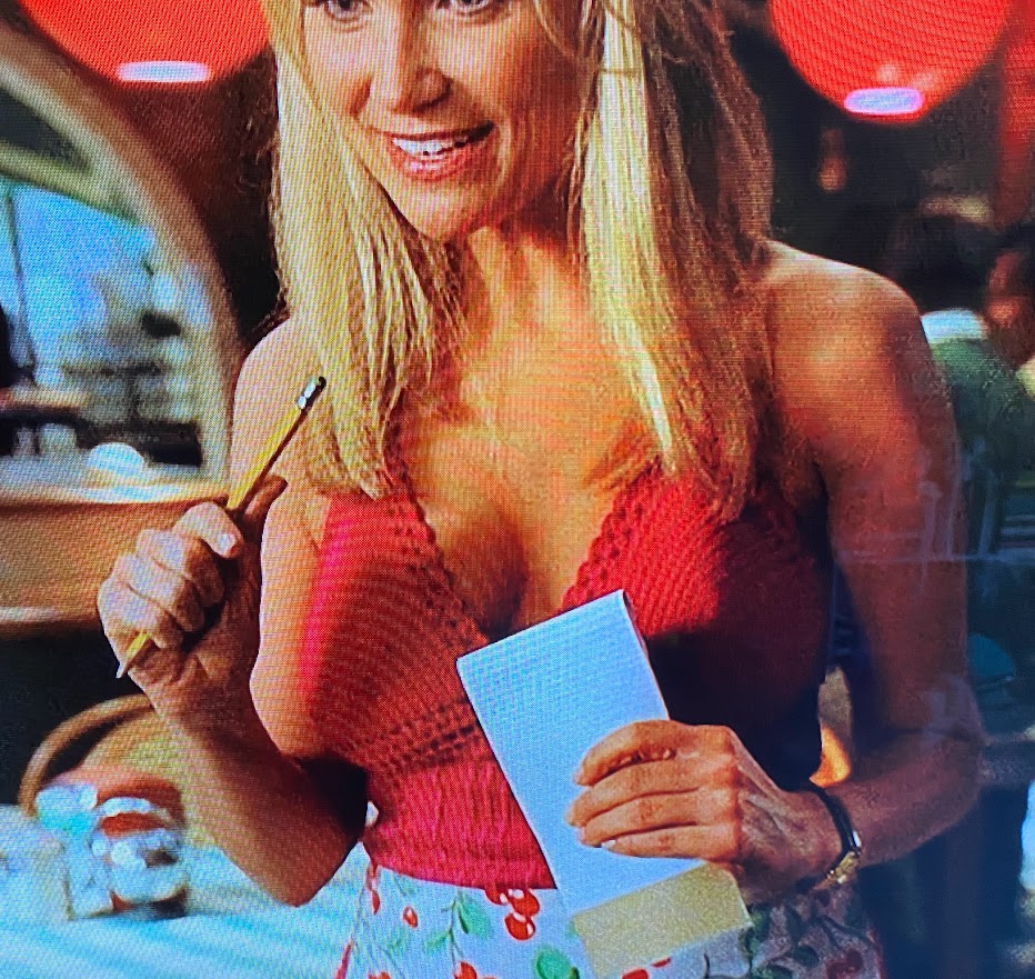 Charlotte Charles and her stunning golden crochet dress isn’t even on the screen yet when Olive appears in her perky, hot pink, crochet halter dress. I think this really sets the stage for the two characters throughout the show. Olive did it first, Charlotte gets the credit because she is just that much more.