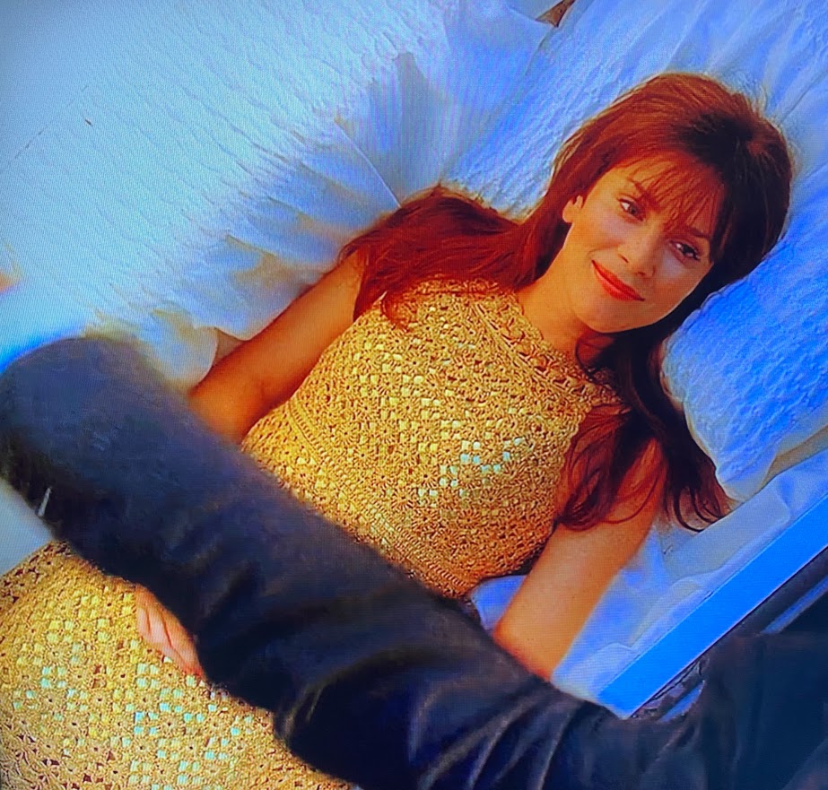 Years ago when it first came out, I watched Pushing Daisies. I was a good enough crocheter then, though a newbie, to identify Charlotte Charles’s dress as crochet, but I missed the rest of the crochet in the show and, gasp, actually watched the show unaware. I decided to re-watch the series while I suffered the daily indignity of exercise to lose myself in the plot. My better trained eye started to pick up on the amount of crochet featured in the show and began to search for the crochet more than watch the plot unfold.