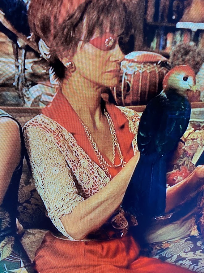 Enter Charlotte’s aunts later in the show. Immediately, we see Aunt Lily in a motif cardigan! It’s done just right with a thin yarn and a beautiful repeat. This is a garment I would make and be proud of.