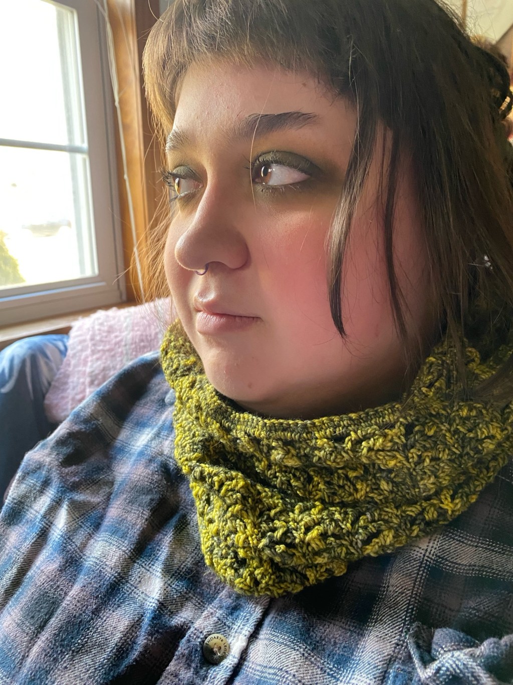 So when Adia brought me a pile of yarn and asked for lizard cowls, I was not surprised. This is how my children go with clothing, from childhood into adulthood. The first cowl has not been recorded for the blog and I would have to remake it to explain it because there was some sort of bizarre magic to the increase. It worked but I feel like it should not have and if we look too closely the entire cowl will dissolve. I have been taking notes on the rest of them.