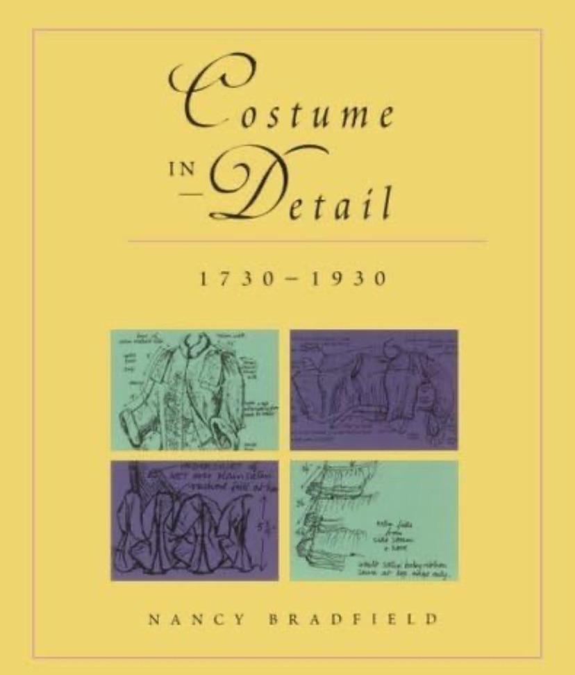 Today’s sneak peak book is Costume in Detail: 1730-1930 by Nancy Bradfield. I first came across this book when I was scrolling Pinterest. The hand drawn images and notes on construction caught my eye, so I set about finding the book. Happily it was still in print when I ordered it, though that does seem to have changed.