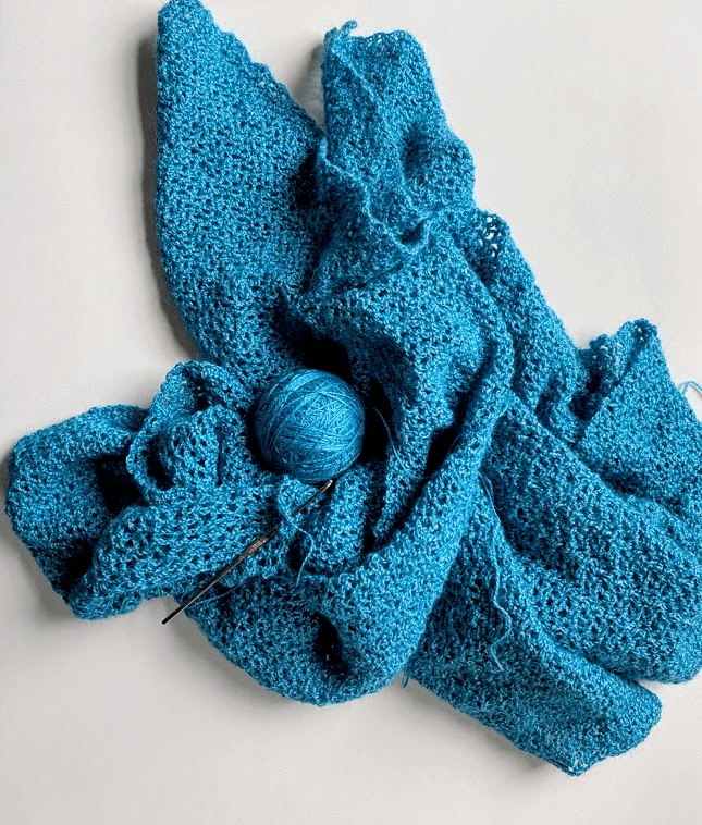 Hannah’s wrap is coming along. I added another ball of yarn to it, so I think I only have this ball and the next to go until I start the border, which will be tiny shells. Of course, given Adia’s scarf, I could have one ball to work before it gets to length or seven. Who knows? Anyway, I’m working on it, so that’s a good thing. I haven’t woven the ends, but, quite frankly, I bet you knew that.